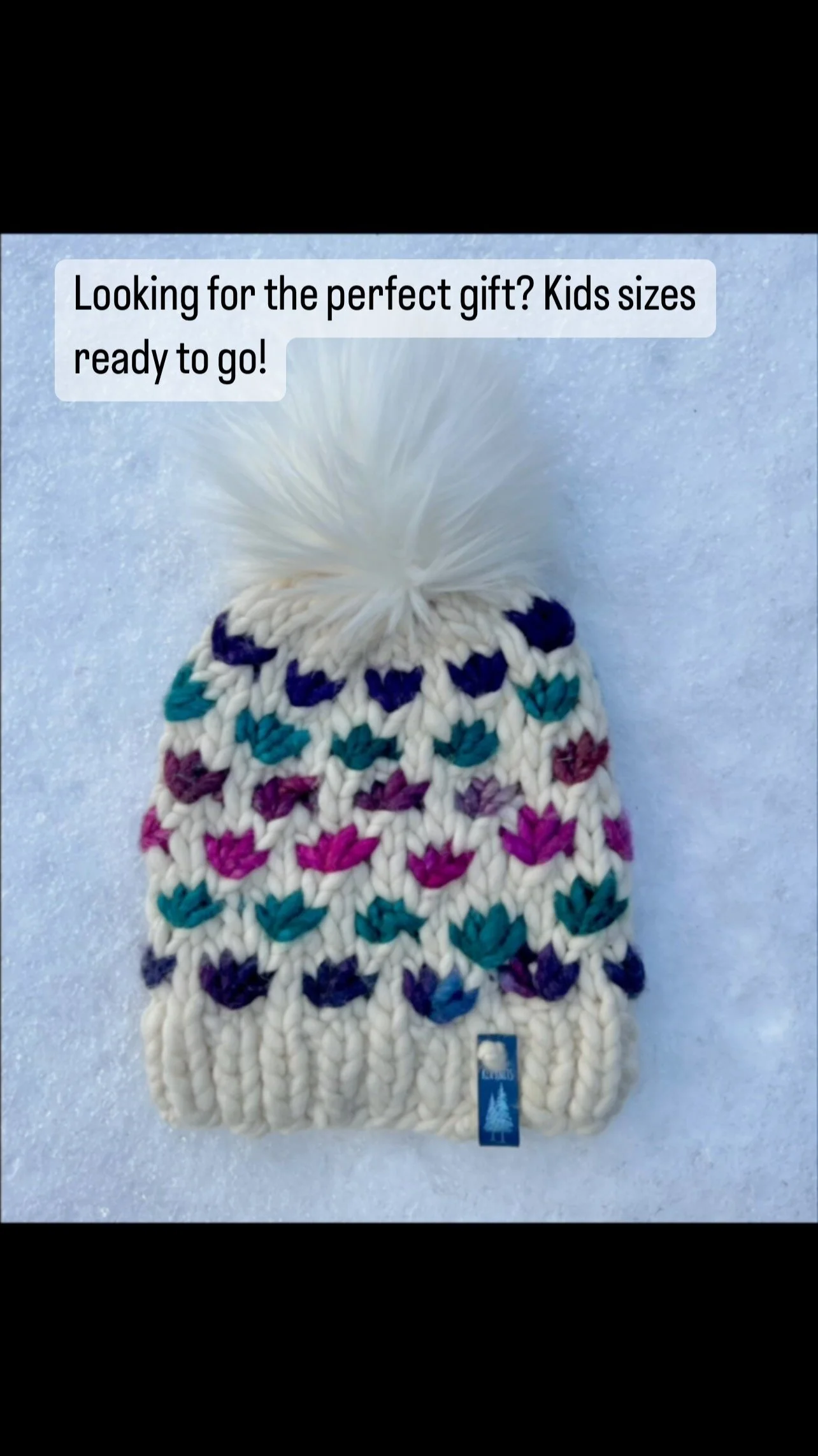 Our products are hand-knit in the USA in one-of-a-kind, luxuriously soft, small batch, hand-dyed and washable wool from Uruguay, sizes infant to adult. Handmade poms, in luxe faux or genuine fur, are removable. For more detail about the care, wool quality and poms, check out Everything Else (you need to know).